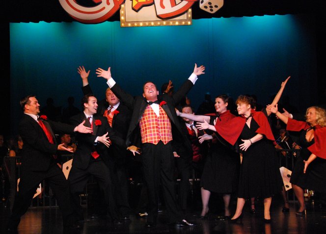 Matthew and Gamblers singing "Luck Be A Lady Tonight"